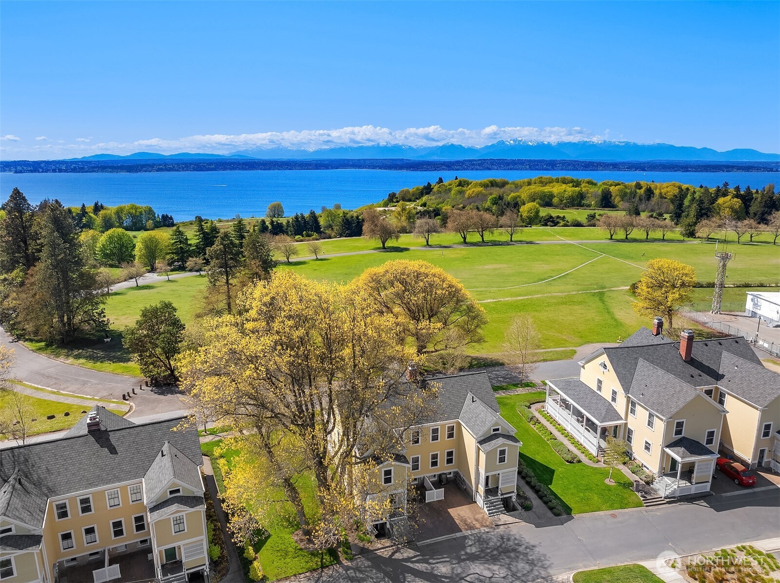 Embrace your opportunity to live an iconic Seattle lifestyle. Surrounded by 534 acres of natural splendor; enjoy serenity & stunning western views in this spacious, historic home in the Fort Lawton Landmark District of Discovery Park. Built in 1900 as officers' quarters, fully restored in 2016 & further enhanced by current owners - the blend of historic architecture, classic upgrades & completely-current vibe is utterly enchanting. An incredibly unique experience, just minutes from Downtown Seattle, you'll feel like you've traveled to an island retreat, without traffic jams & ferry lines. Life slows a bit as you relax on the wide front porch, taking in captivating sunset views over the Sound & Olympics. Inside, enjoy gracious living & dining spaces where lively entertaining & quiet relaxation enjoy equal billing. Coveted 3BRs on the 2nd floor, including a dreamy primary suite. Fabulous top floor bonus room, perfect for movie night. Charming lower level with family room, BR, full BA & separate entry - perfect for long-term guests. 2-car garage (w/EV charger) +add'l pkg. Enjoy a sense of community with available shared playground & garden area. Make this summer a new adventure as you explore miles of sylvan trails or grab your picnic basket & head to Lighthouse Beach.